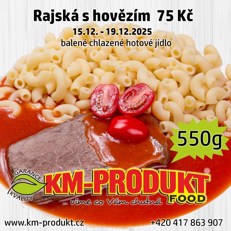 Rajská s hovězím a těstovinami 550g za 75 Kč